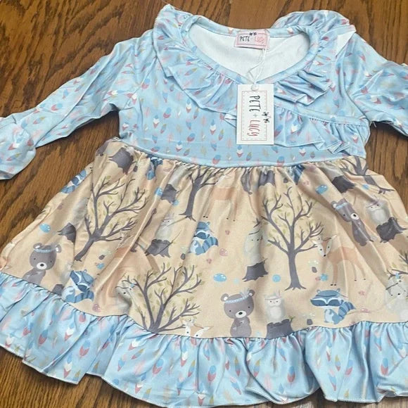 Bring the magic of the forest into your little one’s wardrobe with this Woodland long sleeve dress. Featuring charming woodland creatures, it sparks imagination while keeping kids cozy and stylish. Perfect for playful days and crisp autumn adventures.